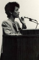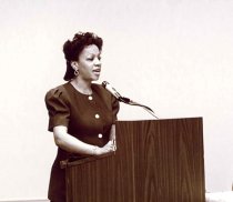 Peggy Valentine - AAPA leader and PA educator. Here speaking at the D.C. Conference, 1989.