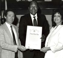 Jack Liskin, Mayor Thomas Bradley and Janice Tramel, NP, PA-C. - Project Access Resolution. Los Angeles Conference, 1988. Jack and Janice were faculty at the USC PA program.
